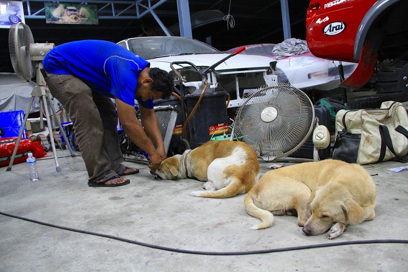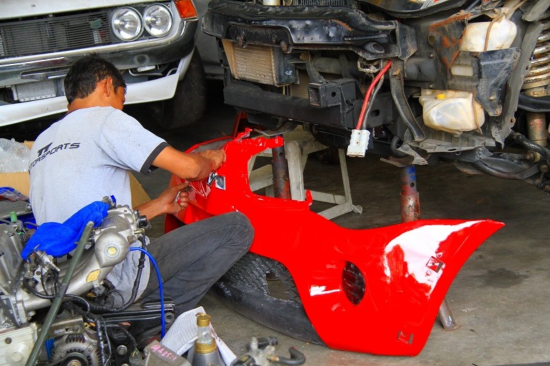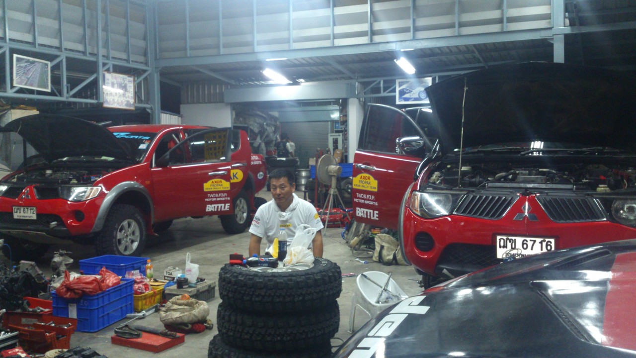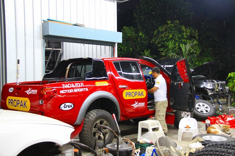 明日はラリーのスタート地であるパタヤに移動なので、なんとか今日中にクルマを仕上げたいところ!