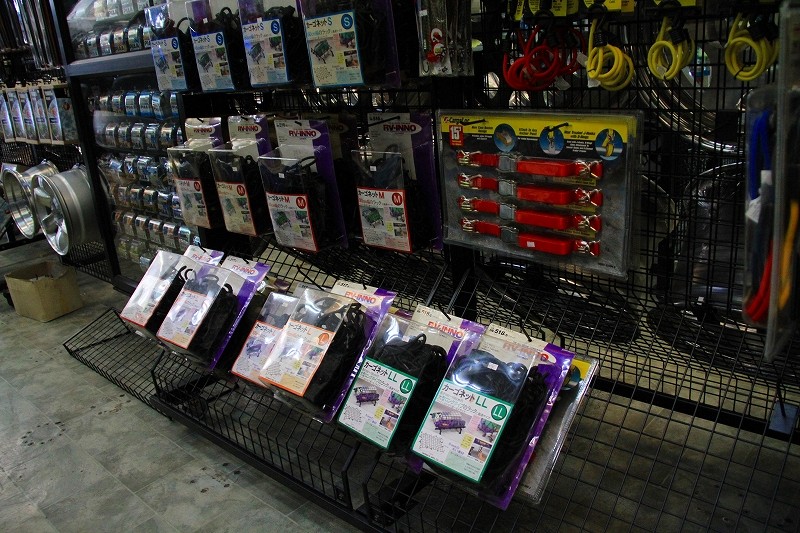 車内でヘルメットを入れの網に、タオル類、軍手や袋関係、ゴムネットや~