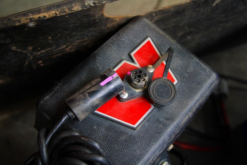 ウインチのリモコンケーブルには、差し込み位置があるので、このように印をつけておきます。