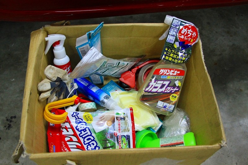 ガラスクリーナーや、曇り止めシート、ガムテープに透明幅広テープ、