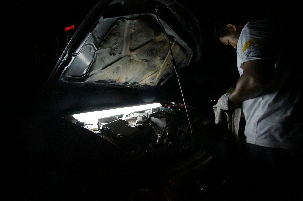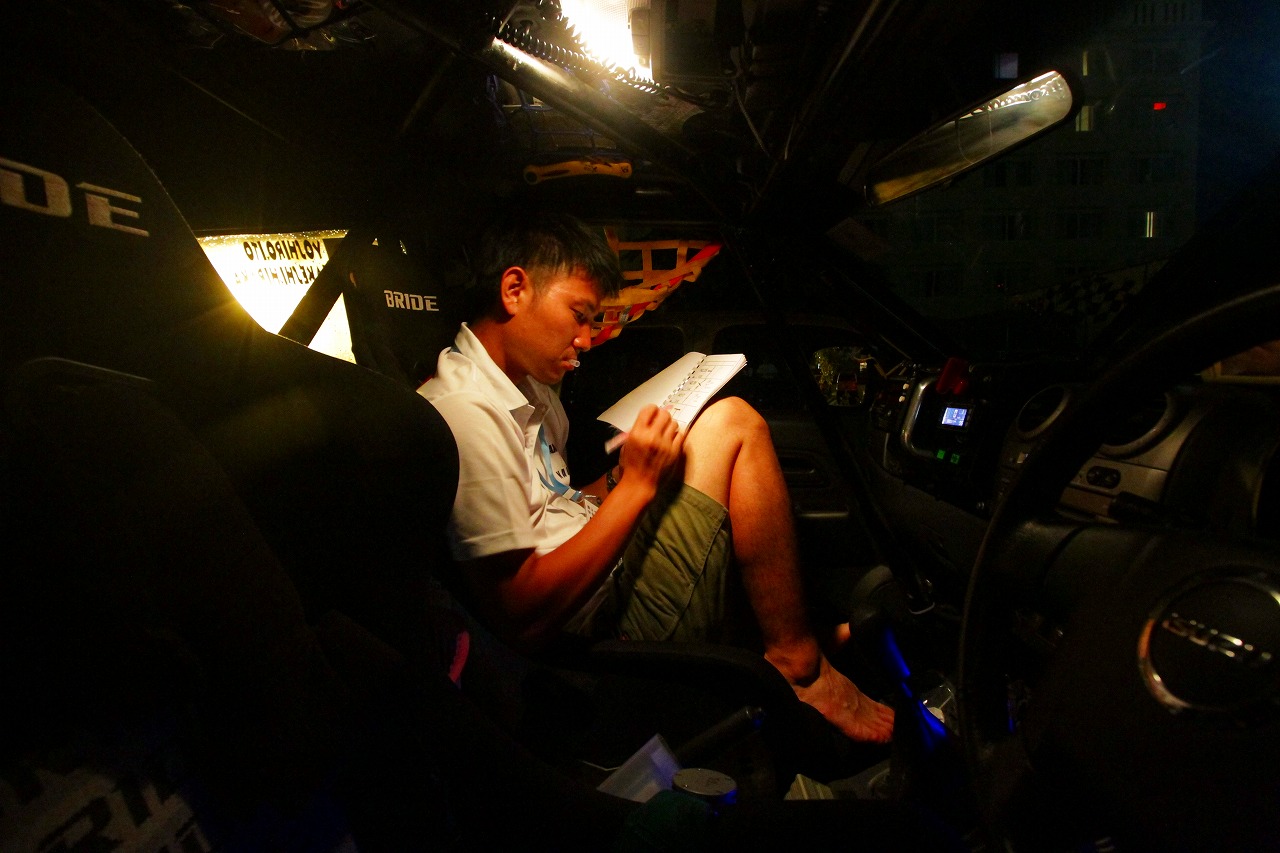 それぞれのチームが、それぞれに車のメンテナンスをしています。